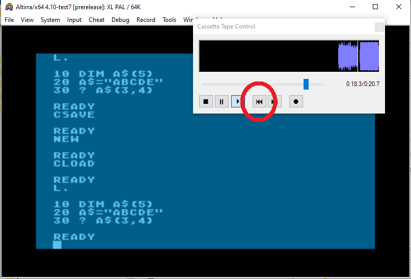 Re: Mit Altirra ein Basicprogramm auf eine virtuelle Kassette speichern