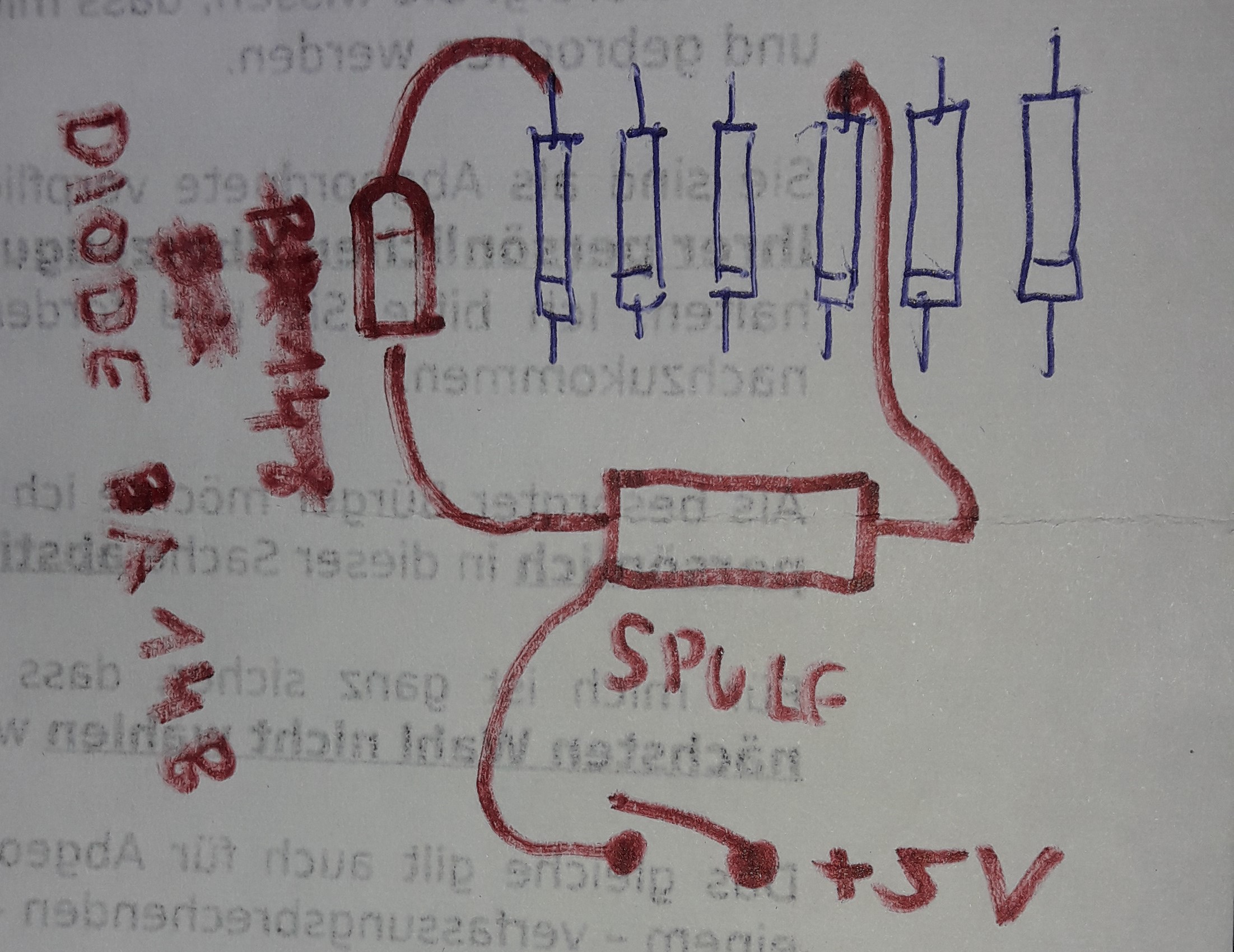 Der rote Draht Schaltet +5 Volt auf die Spule.