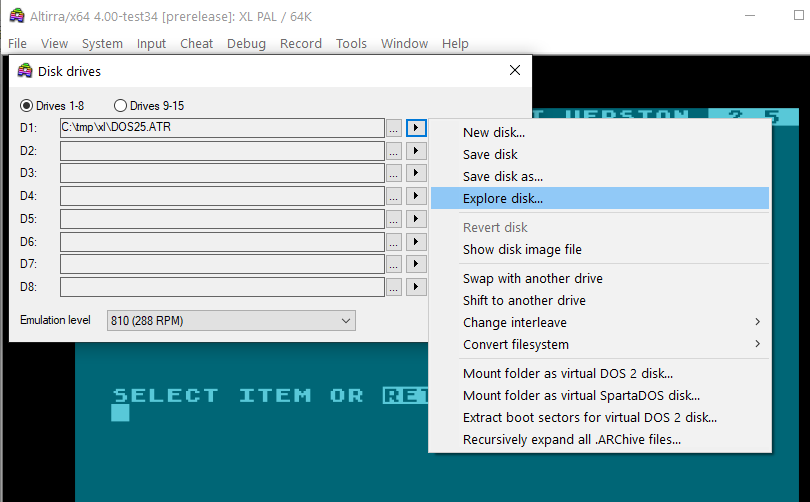 2. Emulator starten in Basic/Turbobasic von <diskimage>.atr