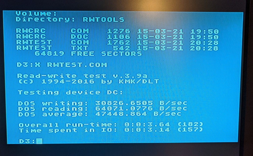 Ich habe gerade eine 512KB Datei mit zufälligem Inhalt erzeugt und unter Sparta Dos von Karin in die Ramdisk kopiert.