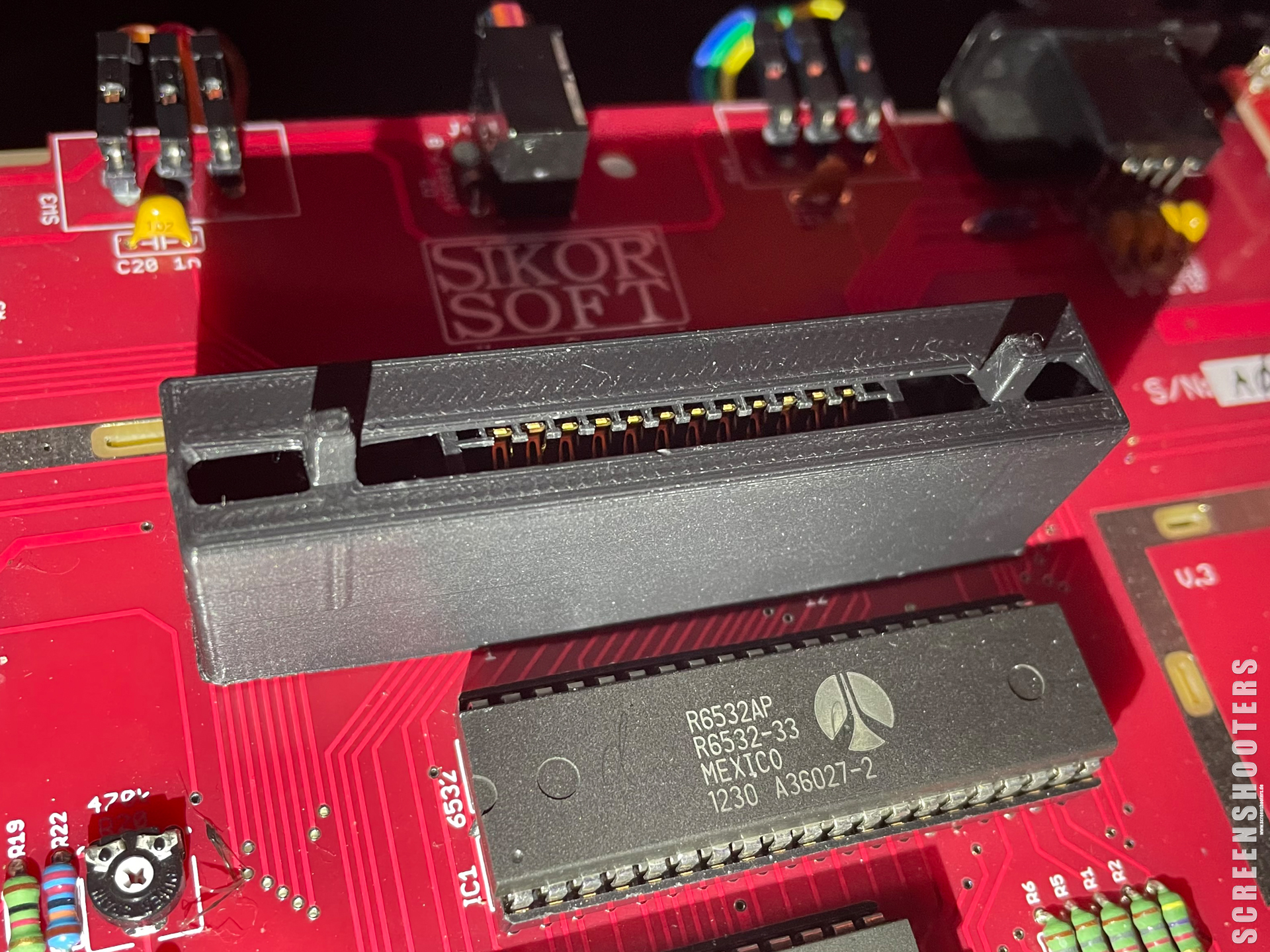 Sooo, da sind noch ein paar viele Testdrucke nötig gewesen bis ich nun sagen würde: das ist es - hab es an meinen beiden Replika-Boards versucht: läßt sich knackig aufstecken (muss man schon leicht nachdrücken damit es ganz aufsitzt), bewegt sich nicht, löst sich nicht wenn ich Cartridges abziehe.