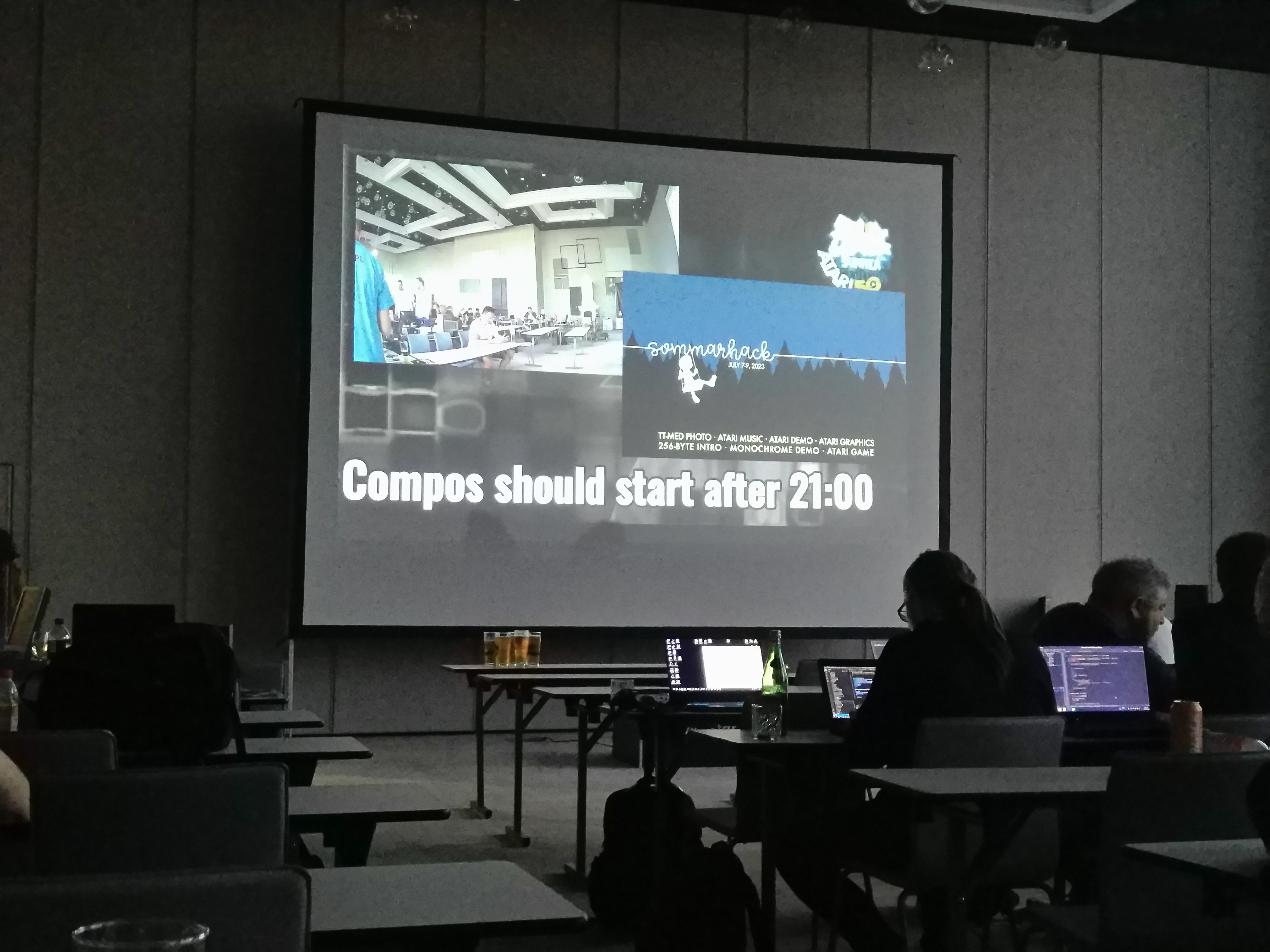 Leider gab es erhebliche Probleme hier vor Ort mit der Musikanlage, so dass eigentlich jeglicher Sound nicht anzuhören war - speziell die beiden Intros von Buddy und mir mit Stereo POKEY Musik, da gab es teilweise Aussetzer und sehr schräge Töne, da beide Kanäle irgendwie zusammengemixt wurden durch die Anlage.