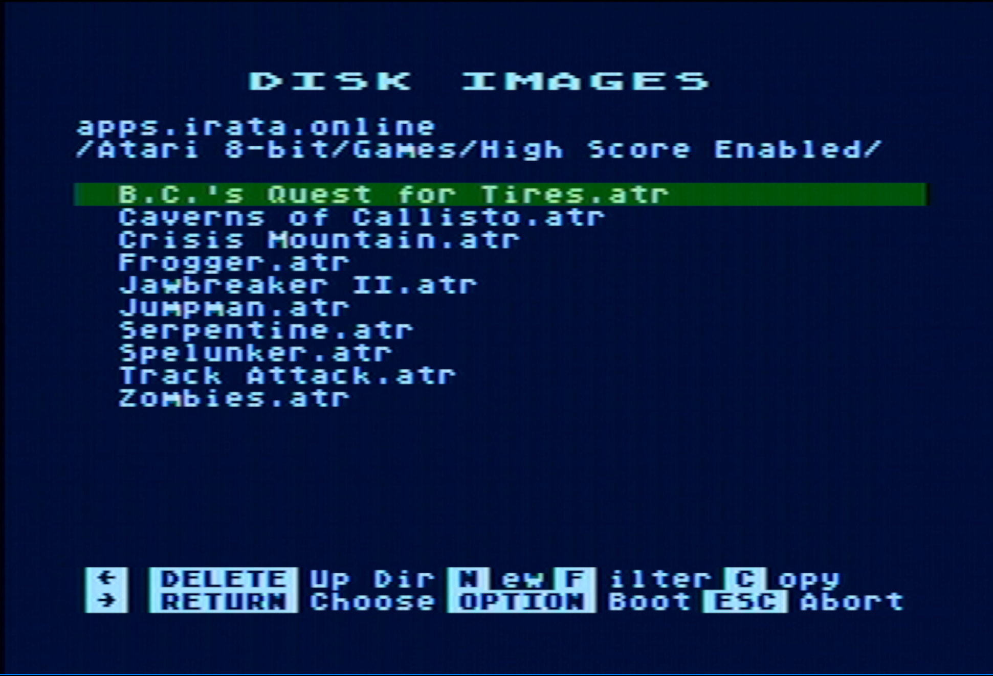 (3) go to /Atari 8-bit/Games/High Score Enabled/ and select Jumpman.atr as READ ONLY.