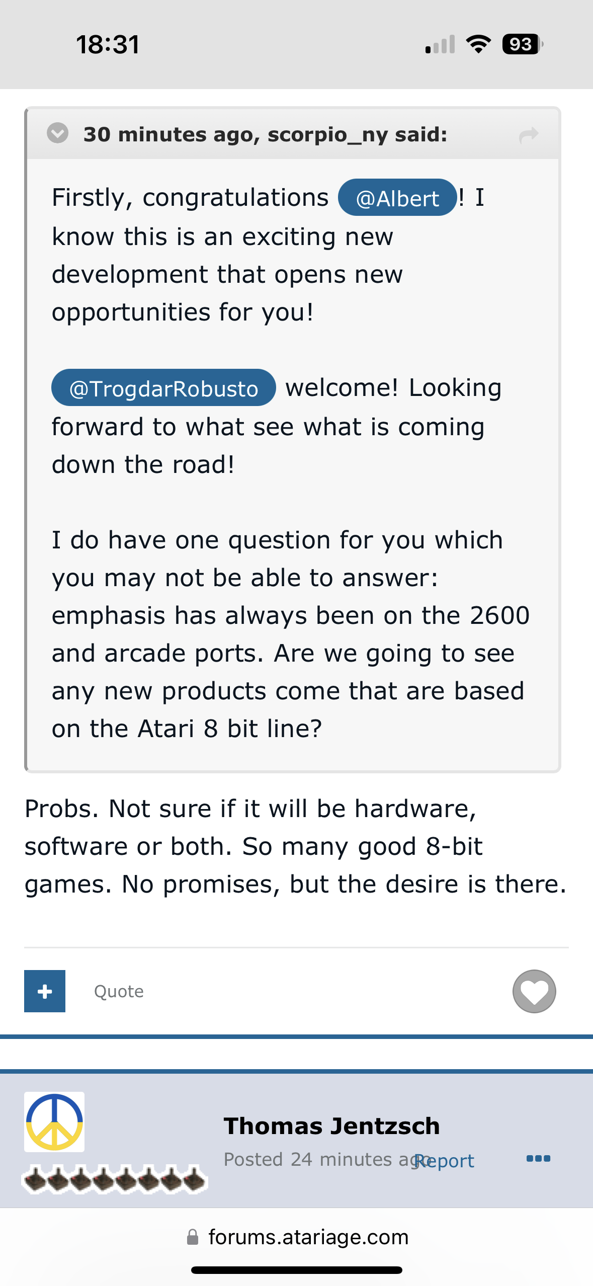 Sein komplettes Statement im Original: https://forums.atariage.com/topic/35460 ... age-atari/