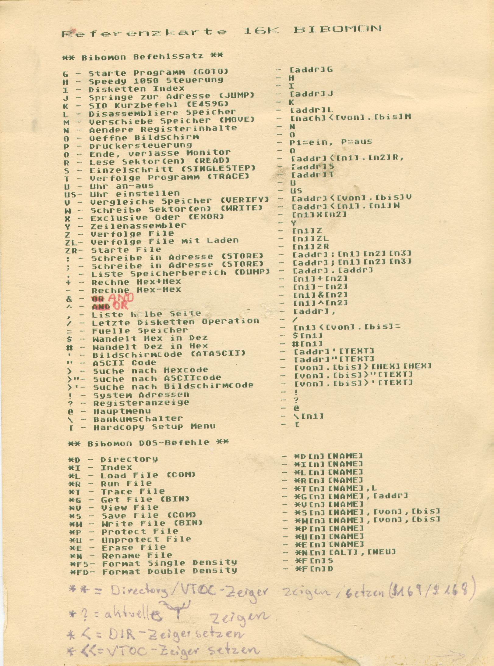 Viele Befehle kannst Du aber von der 16K-Bibomon Referenzkarte verwenden.