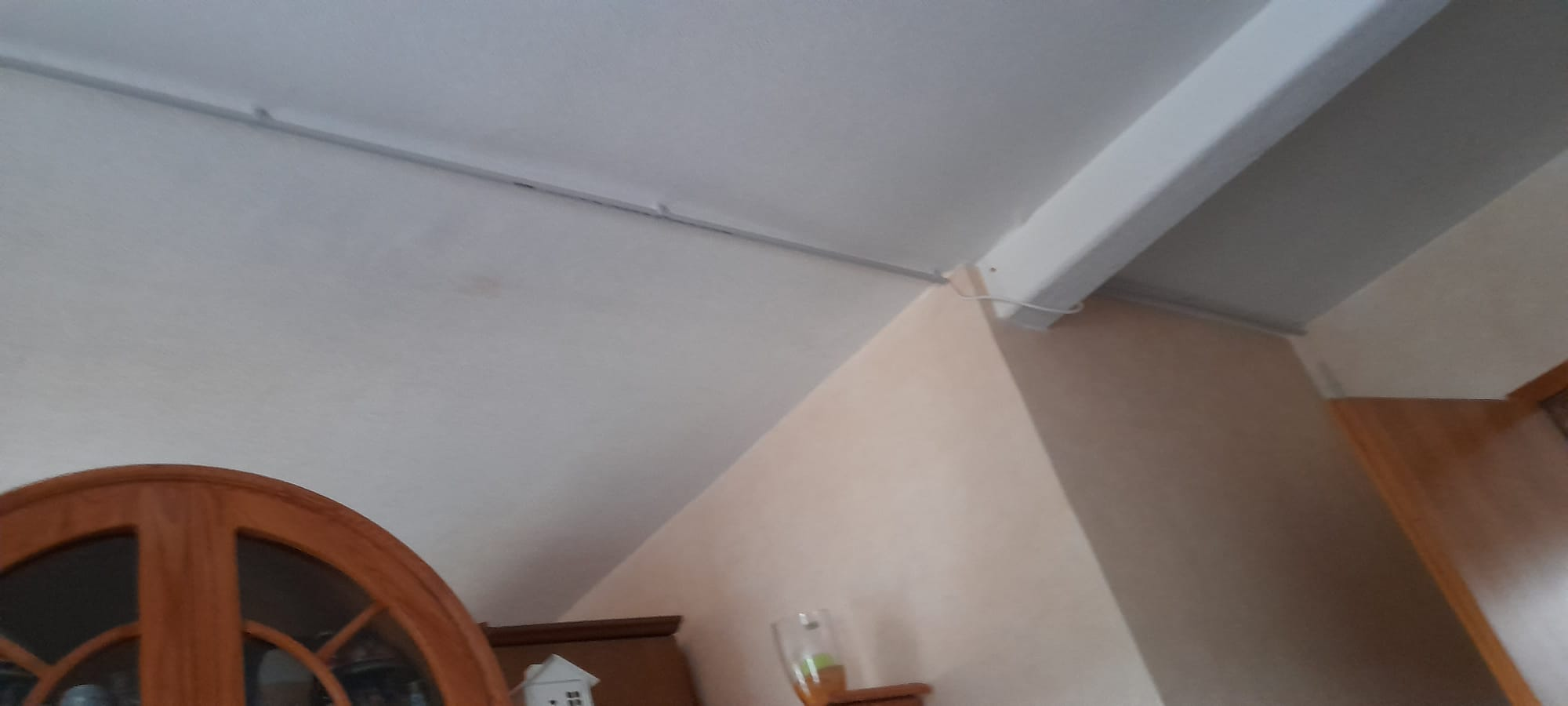 Ich wollte Dir mal folgendes zur Darstellung bringen: unser Wohnzimmer hat etwa folgenden Grundriß: Ich habe geplant, hier noch eine richtige Schrankwand als Raumtrenner ein(zu)bauen (zu lassen), weil wir den hinteren (schmäleren) Bereich als "Gästezimmer" einrichten wollen. Da unser Hauptfernseher im benachbarten Eßzimmer mit Wandhalterung installiert ist, mußte ich ein Satellitenkabel verlegen: hier das Ergebnis: Die im Grundriß dargestellte "Tür" geht zum Eßzimmer und der Hauptteil der Kabelverlegung verschwindet später unter der Schrankwand!