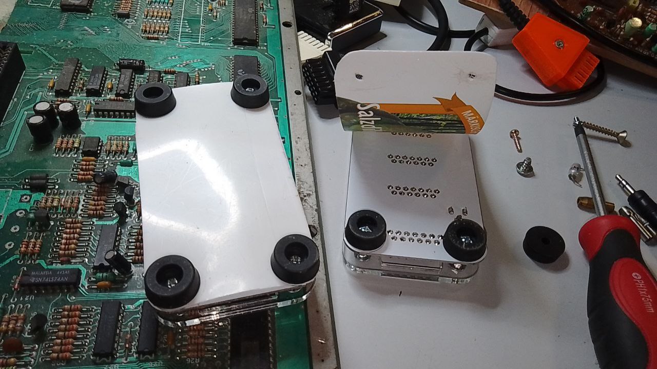 Also habe ich mir heute die Zeit und einen leeren Gurkeneimer genommen und damit dem Sio-Splitter (Lotharek) eine Isolierung verpaßt. Einzig die Schrauben mußte ich austauschen. Nun halten M3x10 die Gummifüße und den Unterbodenschutz.